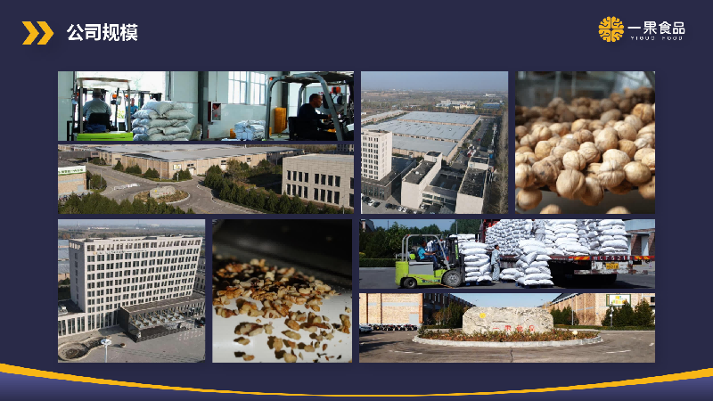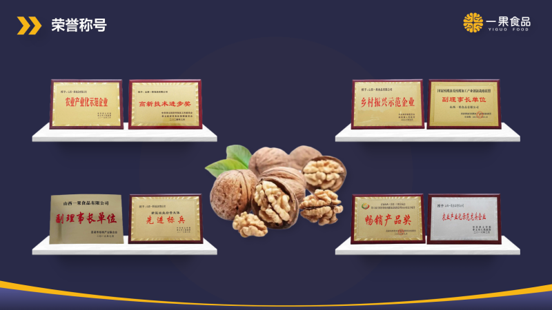 山西一果食品有限公司成立于2014年6月,占地面積260余畝,廠房面積8萬平米,常溫庫房30000平米,冷庫5800平米,原果儲存能力2萬噸以上,注冊資本2000萬元,總投資5億元,是一家靠核桃種植、加工、國內(nèi)外貿(mào)易以及食品科研開發(fā)于一體的農(nóng)業(yè)產(chǎn)業(yè)化現(xiàn)代企業(yè)。其主要業(yè)務(wù)聚焦于核桃基地的培育和核桃系列產(chǎn)品的開發(fā)、生產(chǎn)與銷售。作為呂梁市旨在擴展核桃產(chǎn)業(yè)鏈、增強核桃產(chǎn)業(yè)實力的標志性項目,一果食品已被認定為山西省級重點項目,并榮獲山西省農(nóng)產(chǎn)品加工龍頭企業(yè)稱號。
